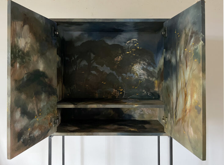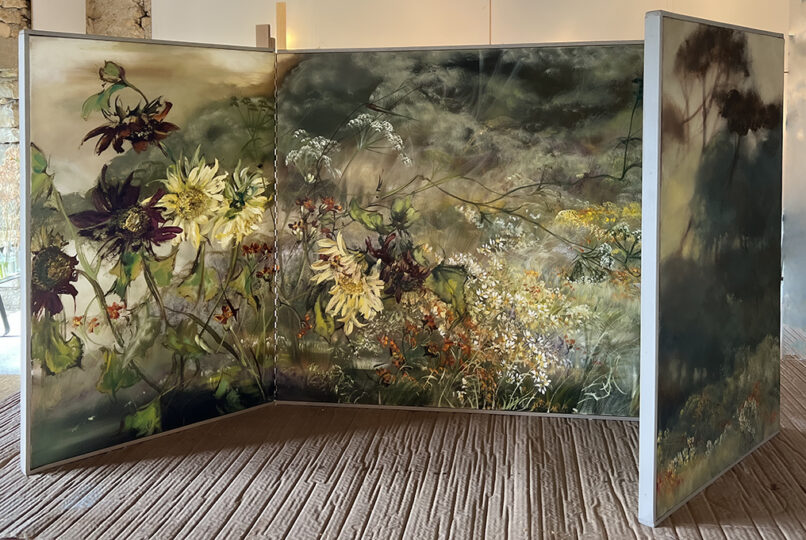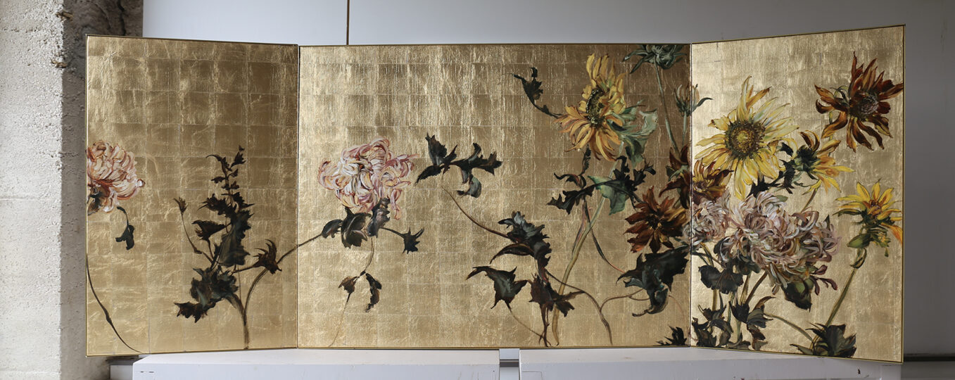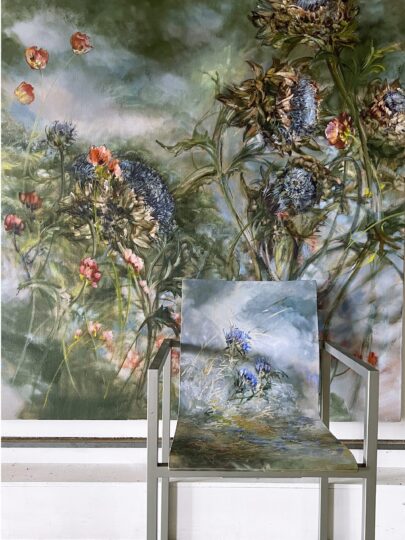 Für die erste Ausstellung in der Schweiz hat Claire Basler Stühle und zwei kleine Stehkonsole aus unserer Werkstatt in florale Kunstwerke verwandelt, die sich fliessend mit den Gemälden derselben Serie verbinden. Einen kleinen Vorgeschmack auf die Ausstellung dürfen wir an unserem Spicher Brunch vorstellen.
