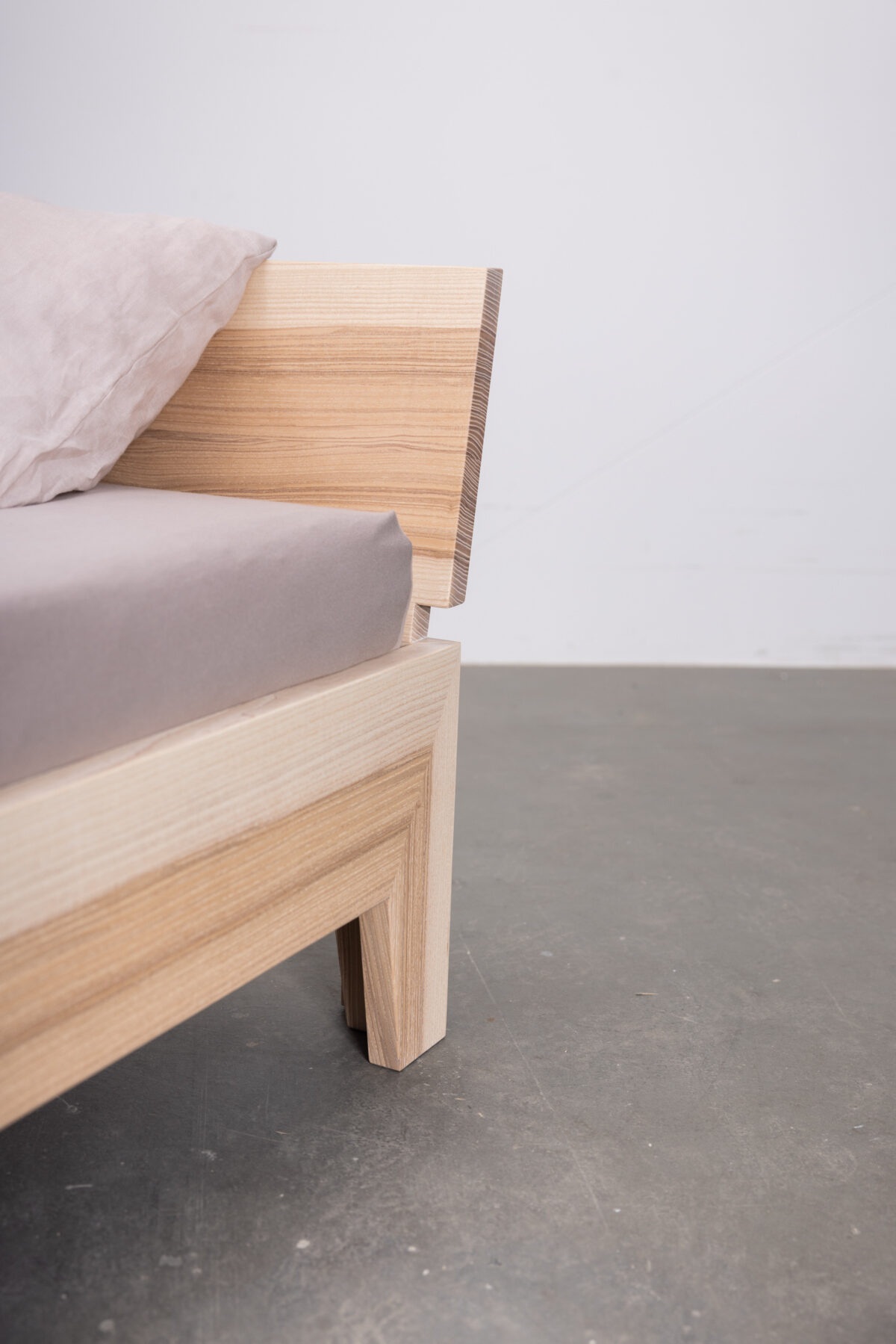 Das Bett Format ist ein wunderschöner und schlichter Bettrahmen mit pfiffiger Linienführung. Die Füsse sind mit einer „falschen“ Gehrung mit den Bettseiten verbunden und lassen das Bett filigran wirken. Der Rahmen ist metallfrei verarbeitet und wird durch ein Stecksystem verbunden und dadurch werkzeuglos auf- und abbaubar. Die Füsse können gerade oder verjüngt gewählt werden.