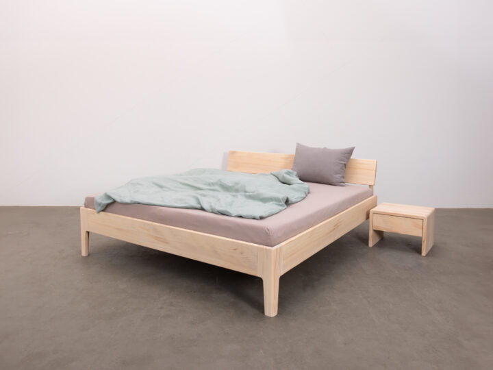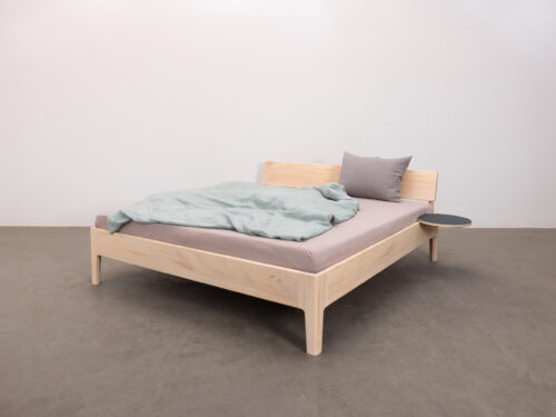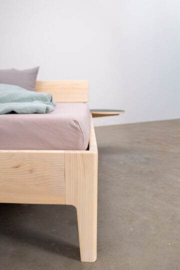 Lyna ist ein Massivholzbett mit fein gerundeten Kanten und einer luftigen, modernen Formensprache. Wir fertigen es in allen gängigen Grössen und auch in einer metallfreien Version an – schauen Sie sich die verschiedenen Holzarten am besten in unserer Ausstellung an. Passend zum Bett gibt es auch einen Schwebenachttisch mit Linoleumbelag oder einen Massivholz-Nachttisch mit oder ohne Schublade.
