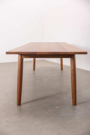 Der Tisch Tomo wird vollständig aus Massivholz gefertigt und steht für Ruhe, Beständigkeit und Zurückhaltung. Die 3cm starke Tischplatte mit leicht gewölbter Kante wird durch vier massive Rundfüsse getragen. Inspiriert von der japanischen Gestaltungskultur verzichtet Tomo bewusst auf Überflüssiges – Reduktion, Harmonie und ausgewogene Proportion machen ihn zeitlos und vielseitig einsetzbar.